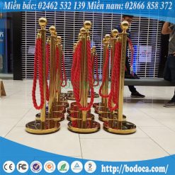 Cột chắn inox dây trùng bao gồm thân cột và đế tách rời, có thể cốđịnh bằng vít dài 120mm chắc chắn, phần chân đế có ruột bê tông bọc cao su, hoặc hoàn toàn được đúc từ cao su, có khả năng chống trơn trượt trong quá trình sử dụng. Cả thân cột và vỏ ngoài chân đếđều được chế tạo từ inox cao cấp, mạ vàng bóng bẩy, làm tăng thêm vẻ trang trọng.