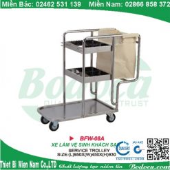 – Xe có ba tầng để dụng cụ vệ sinh, tầng dưới cùng có chỗ để xô lau nhà